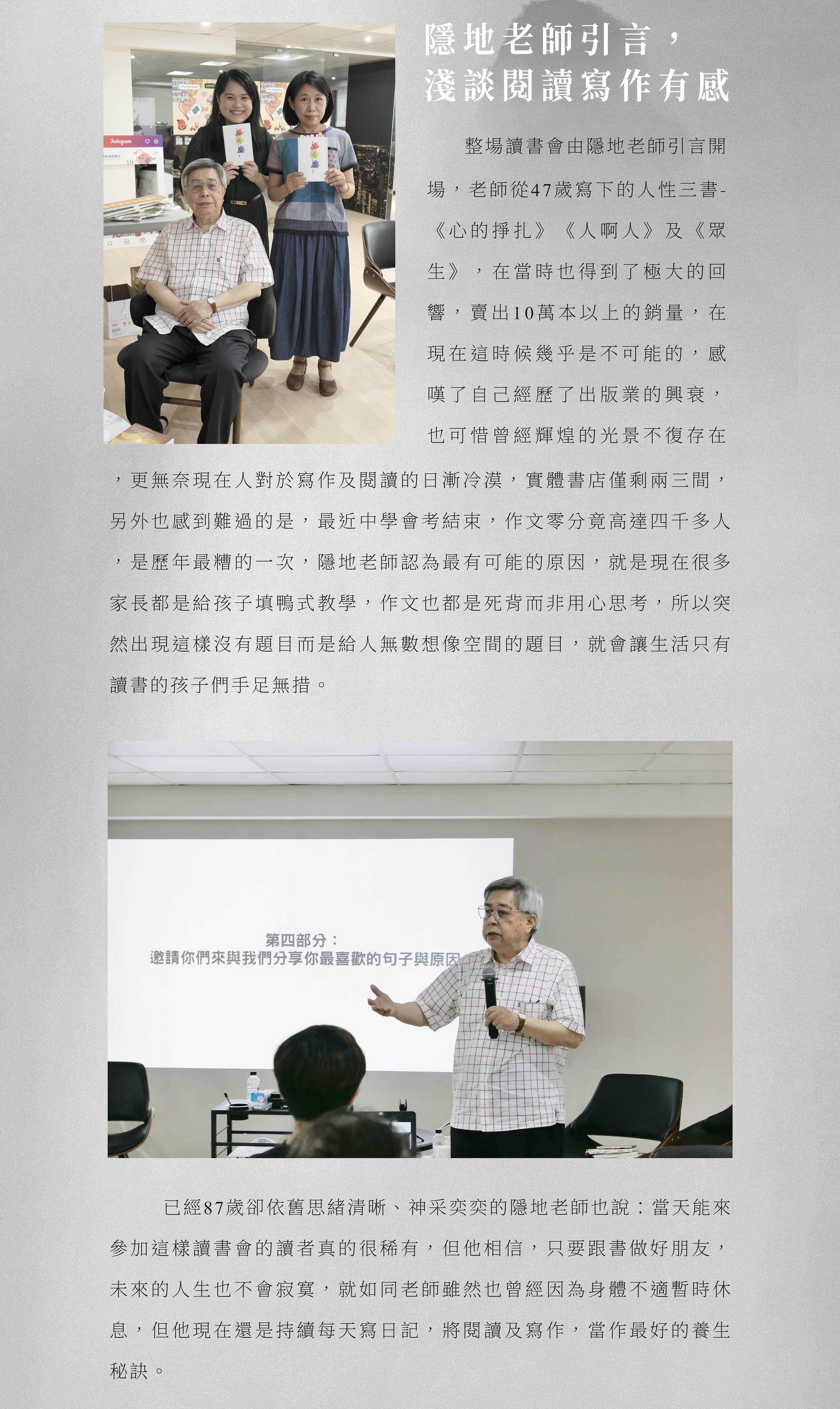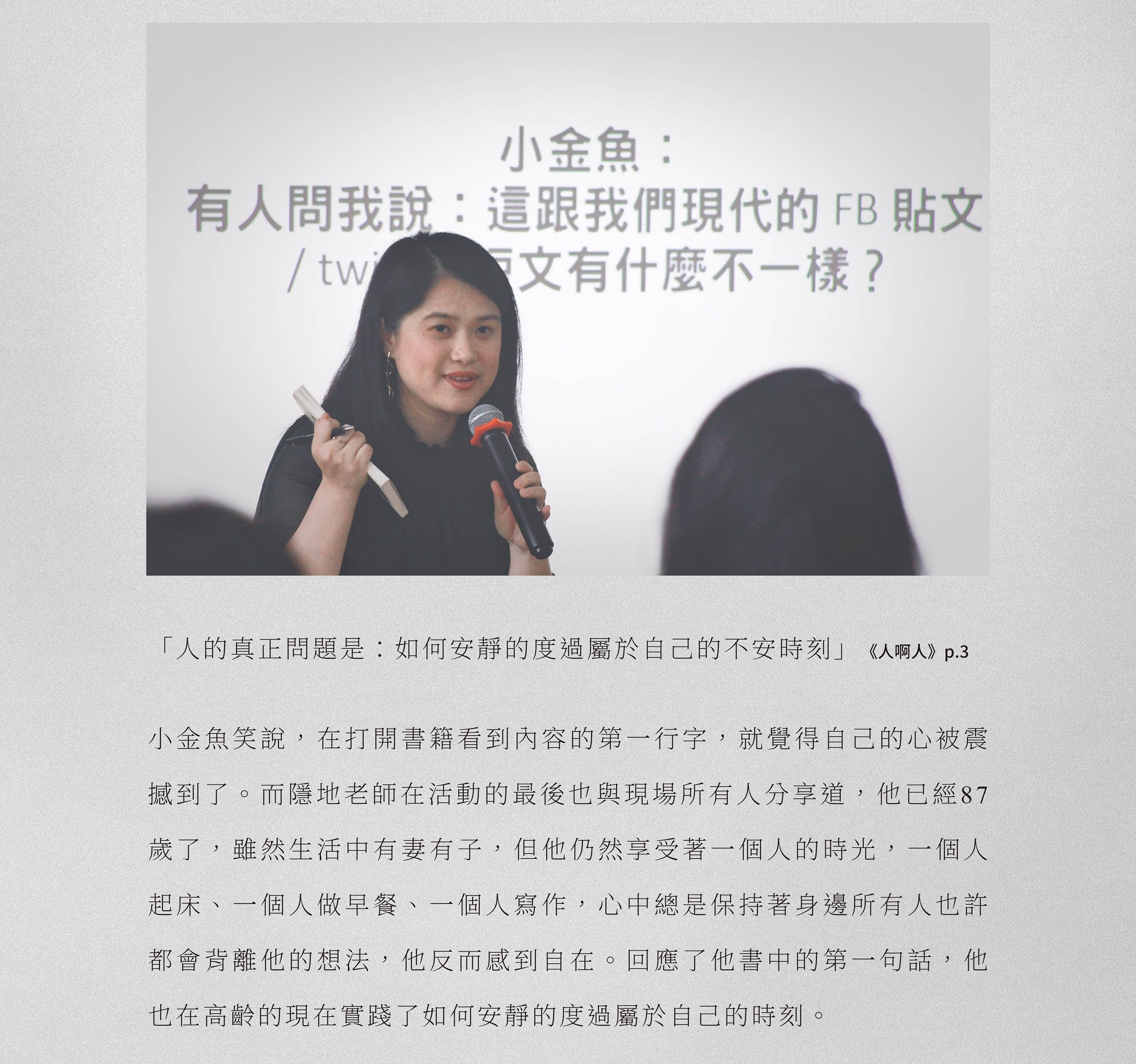 小金魚的人生實驗室-歡慶我人生第一場文學讀書會順利結束-隱地《人啊人》